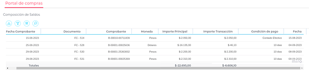A través del enlace Composición de Saldos desde el Home el proveedor podrá acceder a información que le permitirá identificar los comprobantes que se encuentran pendientes de pago.