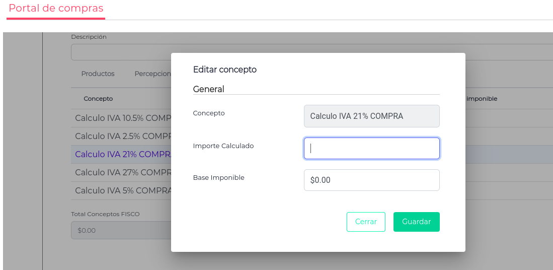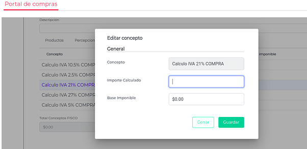 Ingresando al registro se podrá registrar el Importe Calculado y la Base Imponible.