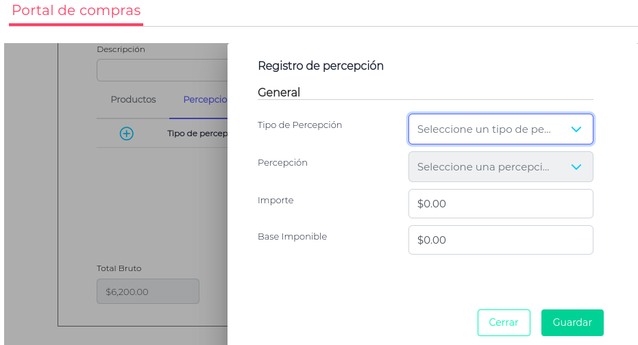 - Tipo de Percepciones