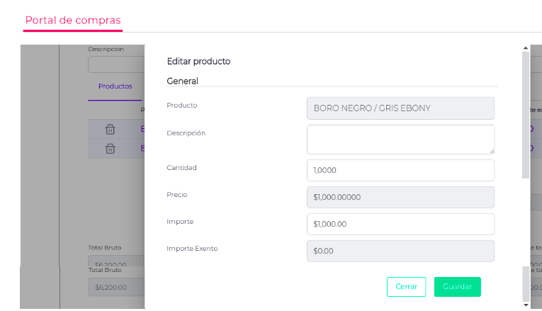 Ingresando a cada producto podrás modificar las cantidades y el importe si se requiere.