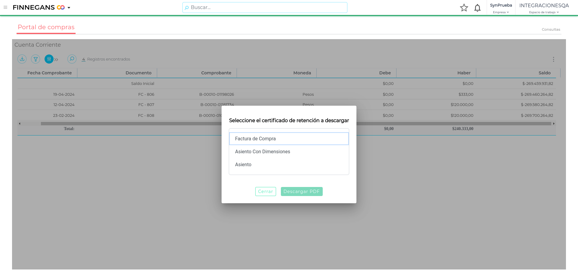 4. Generación centralizada de facturas de compra