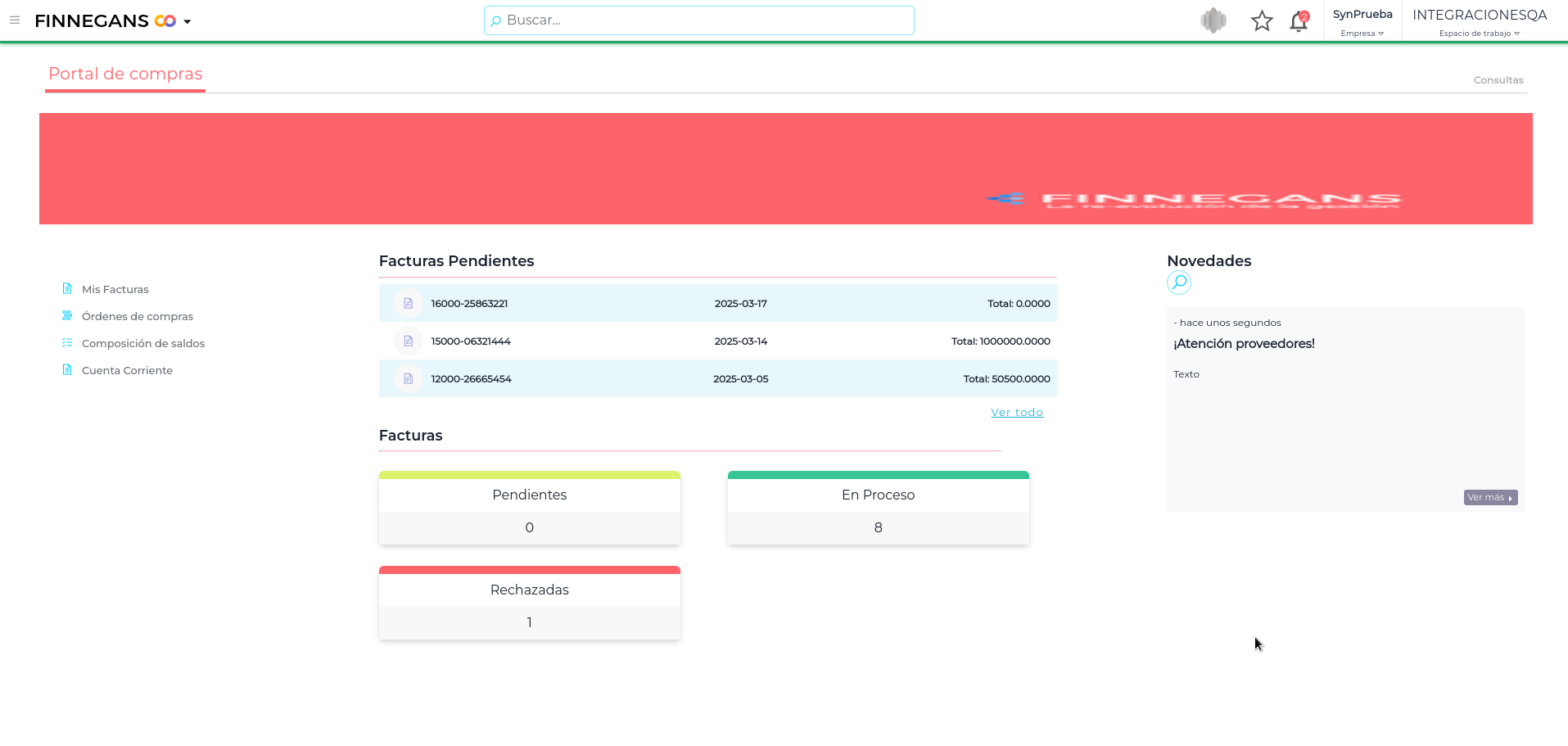 Al tratarse de una aplicación dentro de Finnegans GO, está totalmente integrada con el ERP Finnegans, lo que garantiza una sincronización constante y una actualización en tiempo real de todos los datos. Esto asegura que los proveedores siempre trabajen con la información más precisa y actualizada disponible, optimizando tanto la relación comercial como la gestión interna de la empresa.