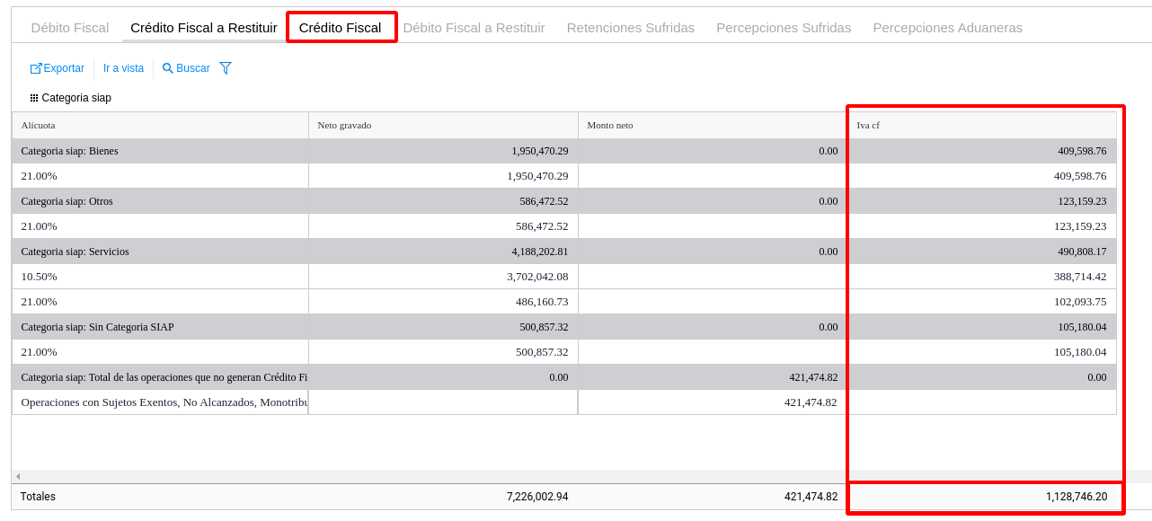 Al visualizar la Posición de IVA Mensual, la suma del Crédito Fiscal y del Débito Fiscal a Restituir, no coinciden con el Total del Crédito Fiscal.