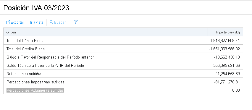 Al verificar la Posición IVA el sistema no muestra los saldos de Percepciones Aduaneras sufridas y tampoco aparecen en la columna correspondiente-