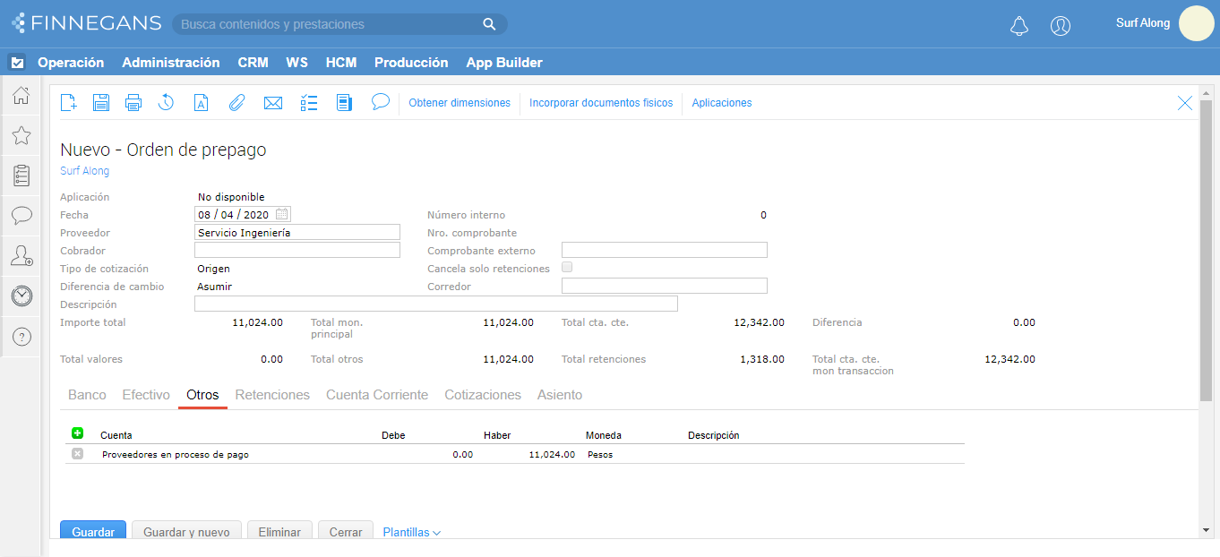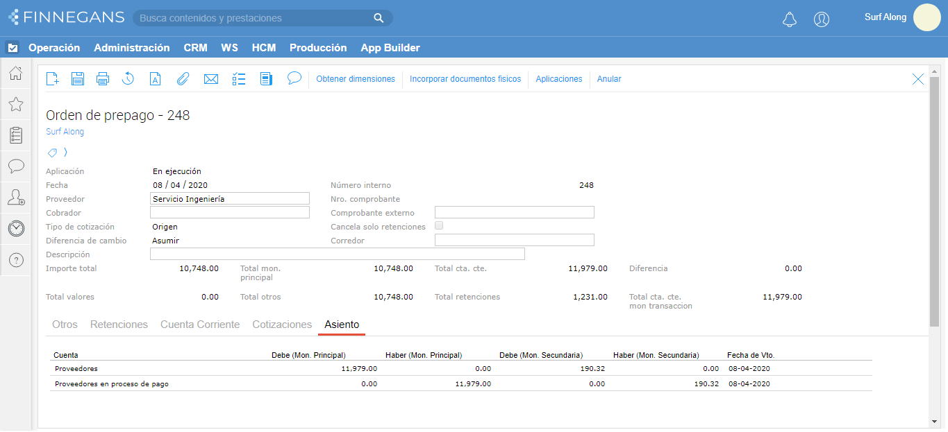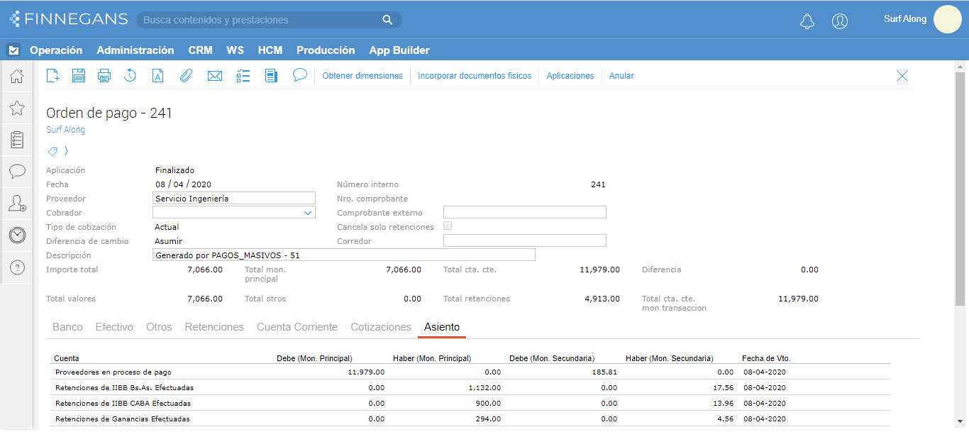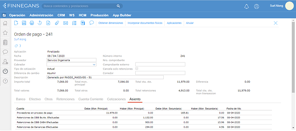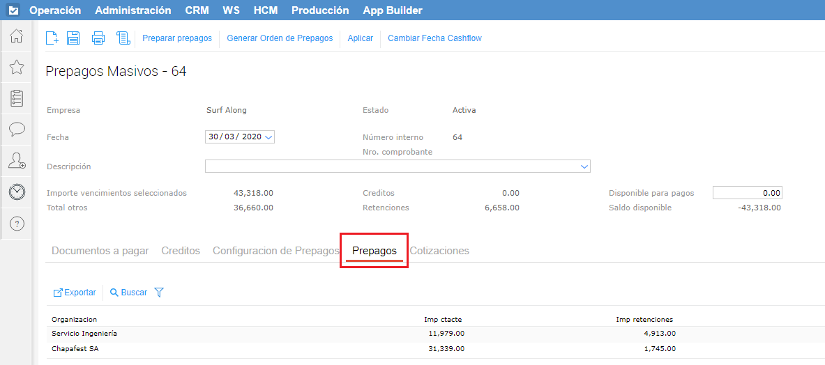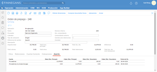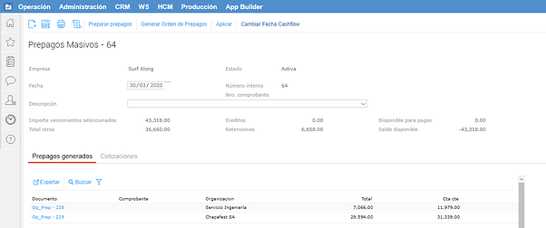 De esta manera termina por completo este proceso. Las órdenes de prepago pueden ser finalizadas a través del asistente de órdenes de pago o a partir del proceso de pagos masivos.