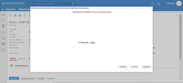 La siguiente funciona para el asistente de pagos masivos o de orden de pago individual. Nos permitirá cerrar el circuito de pago.