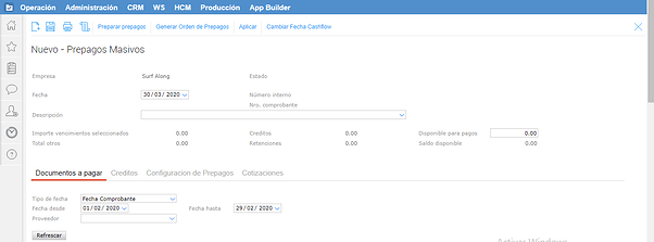 Estas dos permitirán que el asistente de Prepagos Masivos nos traiga, en la solapa “documentos a pagar”, facturas de compra y notas de débito de compra.