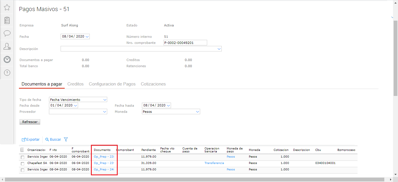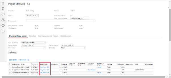 Una vez que se refresca, veremos en la solapa “documentos a pagar” lo siguiente:
