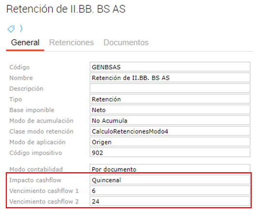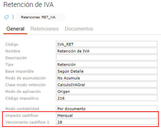 Atención: Cabe destacar que si no se configura ninguna fecha dentro de este maestro, las retenciones no aparecerán en cashflow.