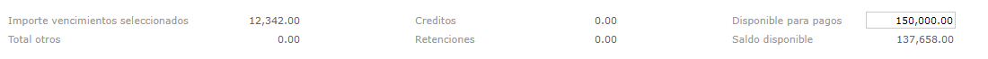 Se puede determinar un monto límite a destinar para el prepago, y el sistema le restará al mismo los documentos que estemos seleccionando prepagar; el saldo se visualizará en el campo “saldo disponible”.