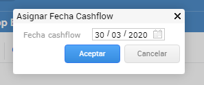 Sirve para cambiar la fecha de impacto en el cashflow de determinado documento. Debemos tildar el documento al que queramos modificarle la fecha, tocar en el botón