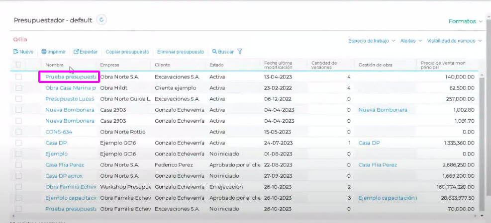 Consulta: Cómo visualizar versiones anteriores de un presupuesto