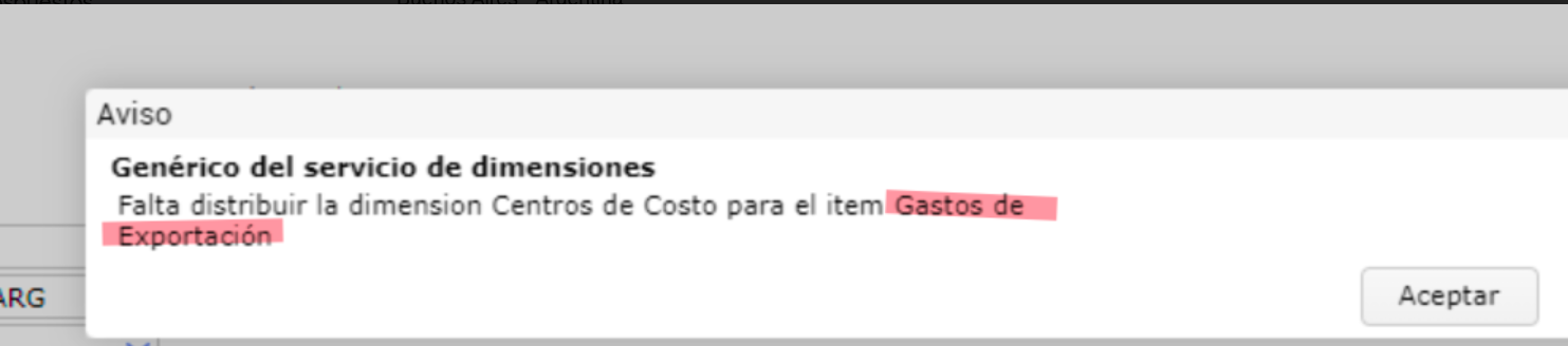 Consulta: Al importar excel en Presupuesto sale Aviso : Genérico del servicio de dimensiones. Falta distribuir la dimensión Centro de Costos para el ítem Gastos de Exportación.