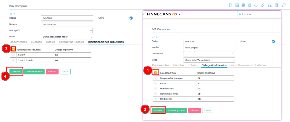 - Agregar todas las categorías fiscales y las identificaciones tributarias.