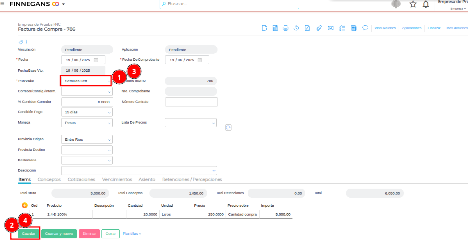 - Cambiar el proveedor de la factura.