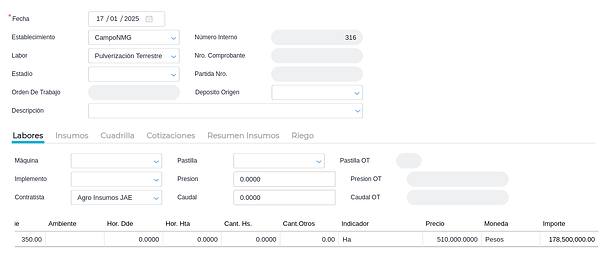 El presente documento tiene como objetivo ayudar al usuario a comprender y a utilizar el circuito de compra de labores. El mismo consta de la generación de la recepción de compra de labores, a través de un Laboreo, la que genera los consumos y gastos de dicho proceso y el paso siguiente, la carga de la Factura de Compra, la cual completa el proceso.