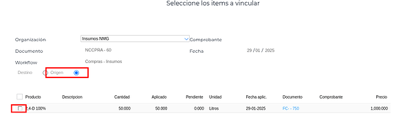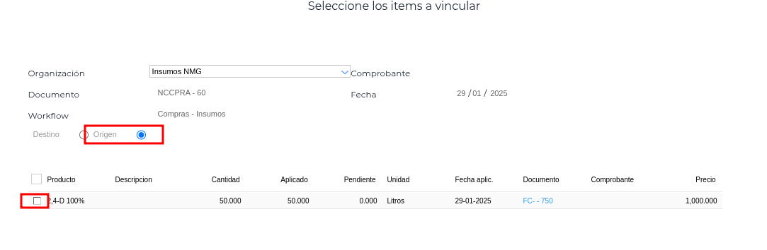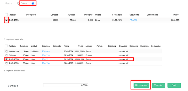 Se repiten los pasos para el proceso inverso. Para esto, se busca la factura para realizar la vinculación.
