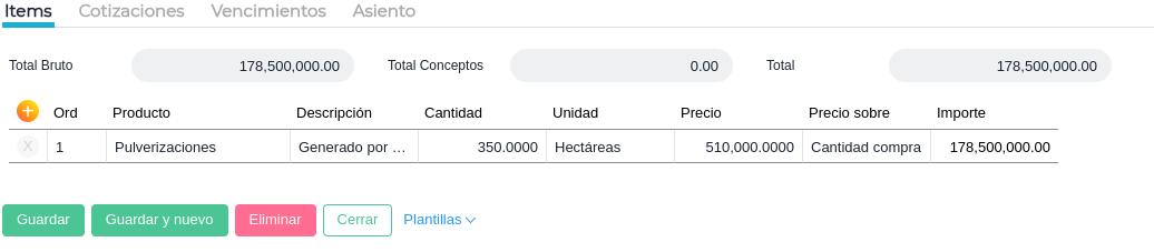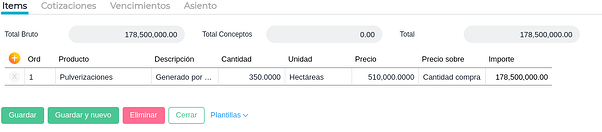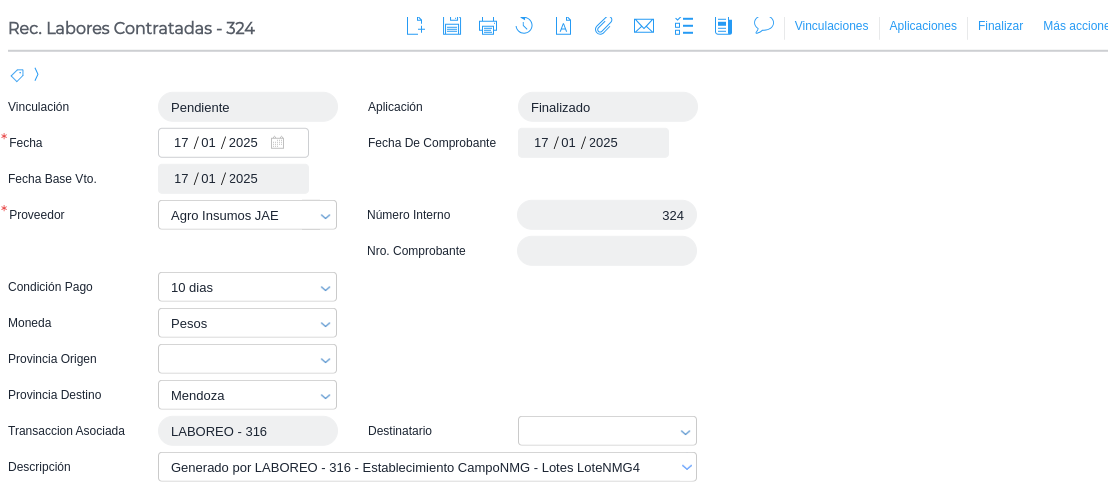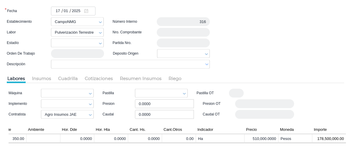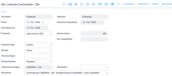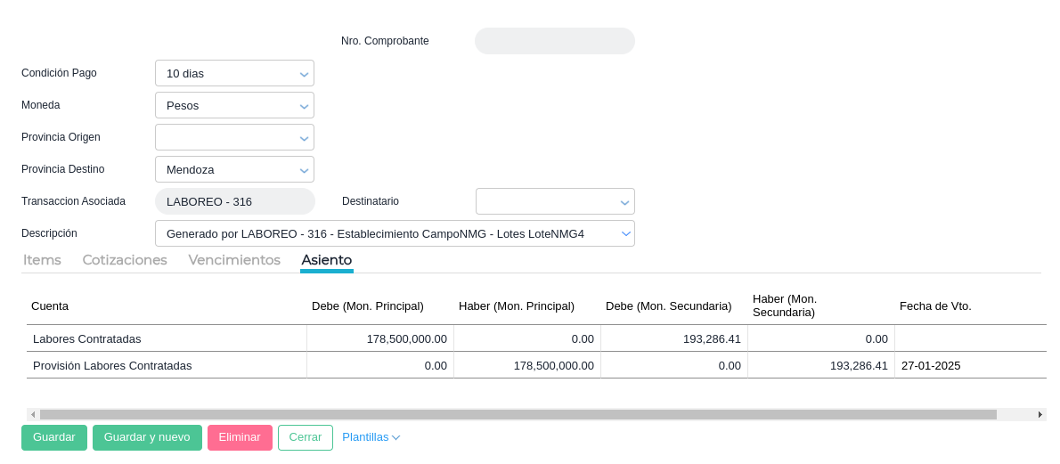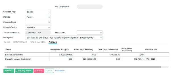 - cuenta de gastos Labores Contratadas (se imputa al centro de costo del cultivo