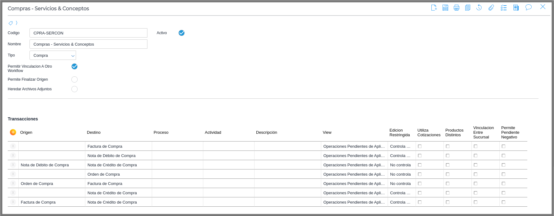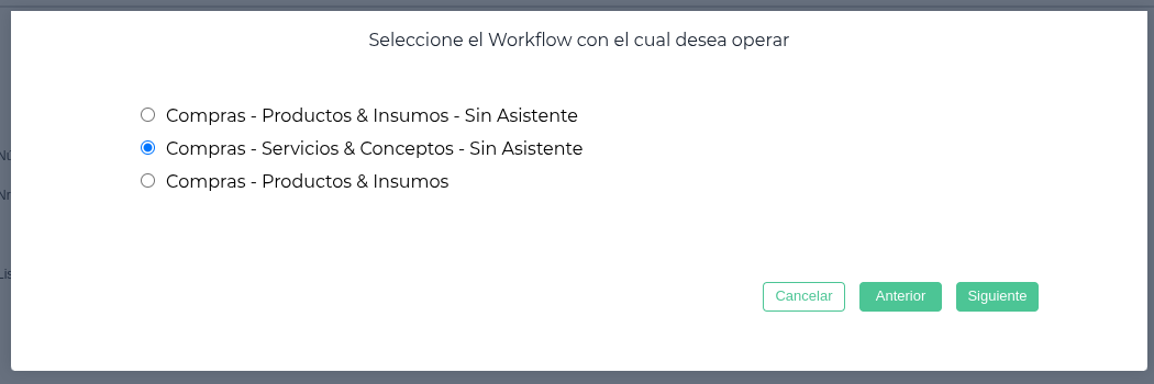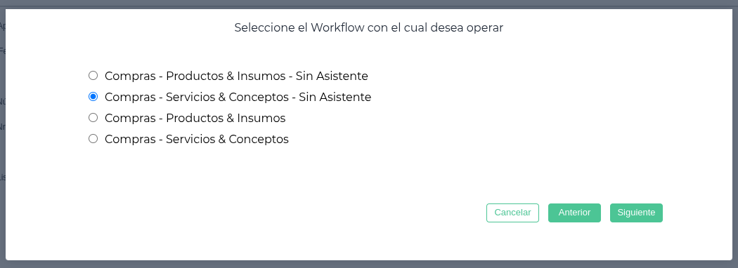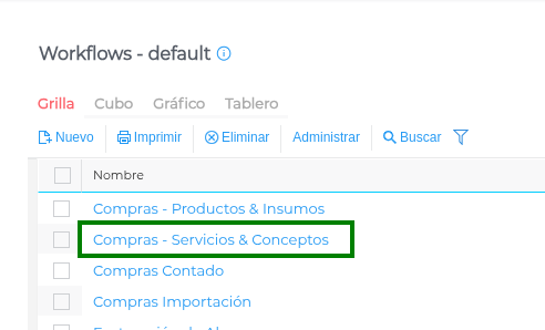Para el caso de la compra de Gastos y Servicios, se debe utilizar el workflow “Compras - Servicios y Conceptos”.