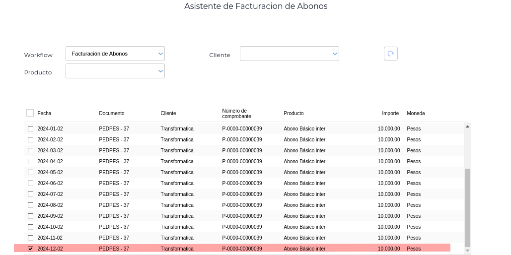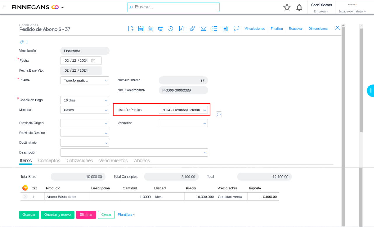 Esta funcionalidad permite asignar una lista de precios para que, al ejecutar el proceso de facturación de abonos, las facturas emitidas hereden la lista de precios.
