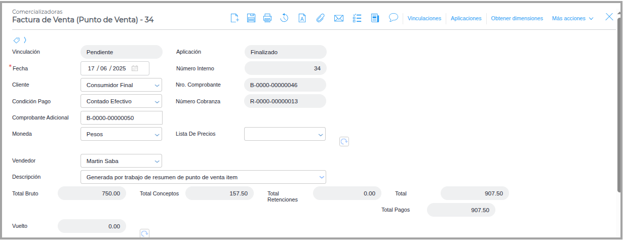 - Además, como se mencionó antes, se genera un documento de recibo de cobranzas asociado al punto de venta, que sin resumir la información, muestra todos los cobros y con qué medios se realizaron.