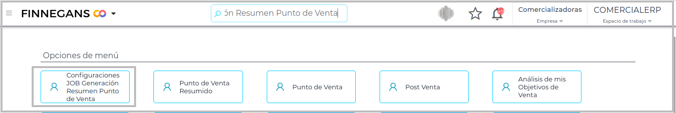 En el buscador ingresar Configuraciones JOB Generación Resumen Punto de Venta y seleccionar el siguiente la opción que se ve en la imagen.