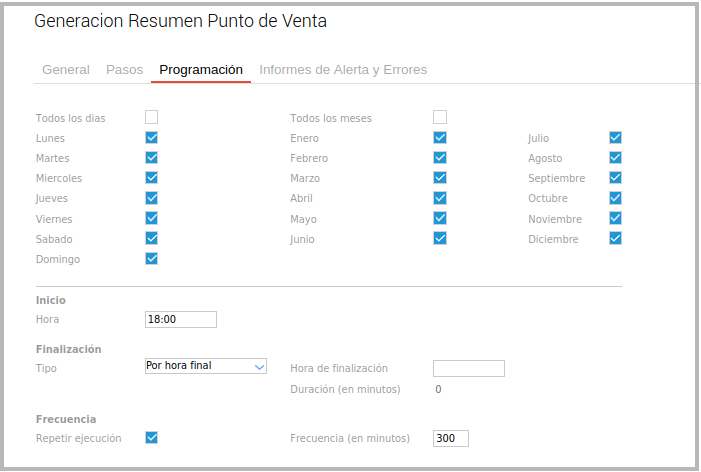 Se debe programar en que momento se debe correr el trabajo para generar los documentos de Puntos de Venta.
