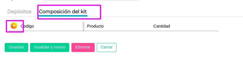 - Completamos los productos que componen el kit, indicando el producto en cuestión y la cantidad.