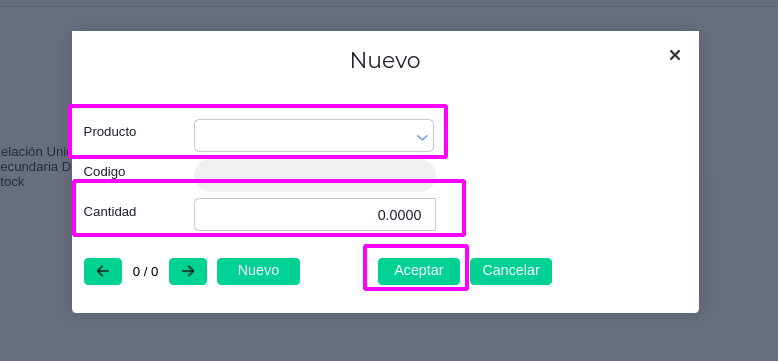 - Dentro del maestro de producción ir a “Nuevo” y completamos los datos necesarios para crear el producto.
