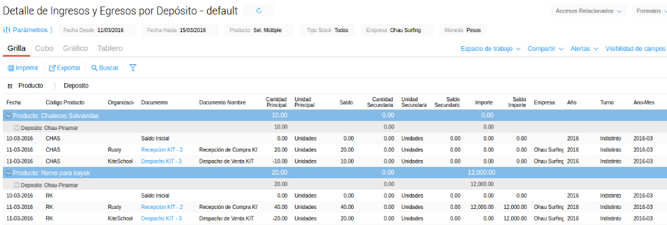 Como se puede observar, solo se ve el ingreso y egreso de los productos que componen el kit.