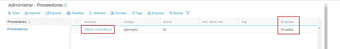 En este ejemplo el proveedor está privado solo para la empresa “Prueba” y lo configuraremos para que sea público.