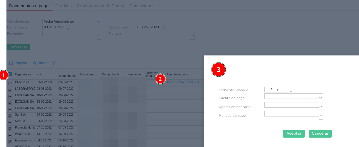- Fecha Vto. Cheque