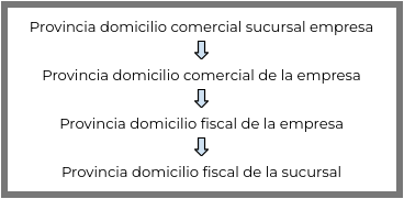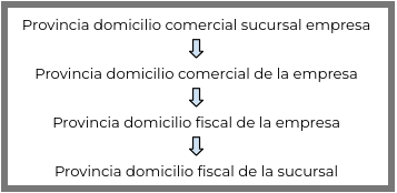 - Por último, de no existir domicilio fiscal de la empresa, se toma la provincia del domicilio fiscal de la sucursal de la empresa.