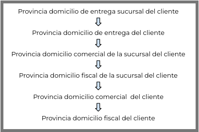- Si no se indicó domicilio de entrega en la sucursal del cliente, se toma la provincia del domicilio de entrega del cliente.