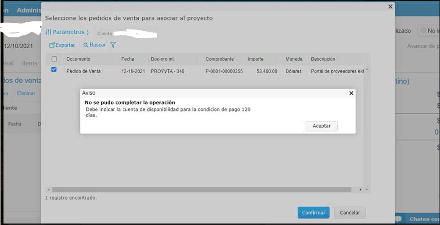 3-Volver a intentar asociar los pedidos de venta al proyecto en cuestión.