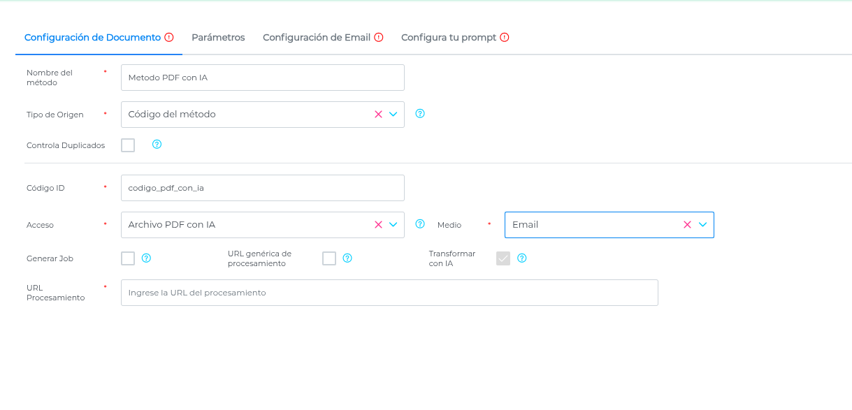 Para realizar publicaciones mediante PDF con IA, debemos configurar correctamente un Método de publicación
