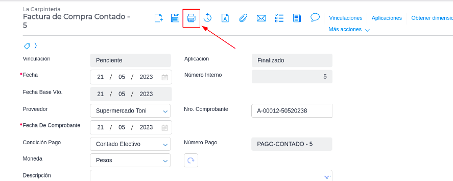 Factura de compra contado