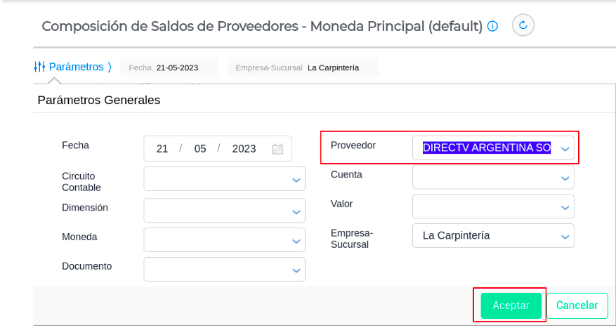 - Completar los parámetros para consultar el saldo del proveedor: DIRECTV ARGENTINA SOCIEDAD ANÓNIMA - Aceptar
