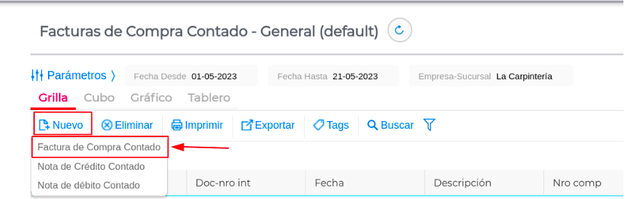 - Nuevo - Factura de Compra Contado