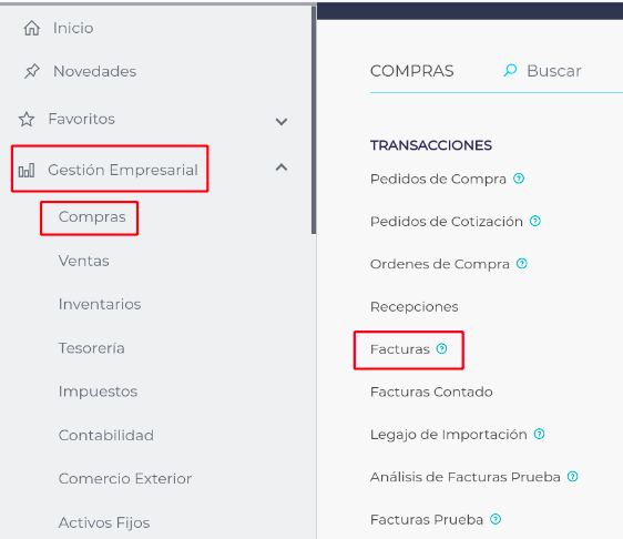 - Ingresar a Menú - Gestión Empresarial - Compras - Facturas