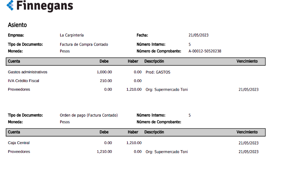 Con el fin de simplificar la carga de documentos de compra que se pagan en el momento de contraer la deuda, se desarrolló esta funcionalidad que permite cargar tanto la factura como el pago dentro de la misma transacción.