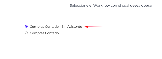 - Seleccionar el workflow, en este caso: Compras Contado - Sin Asistente