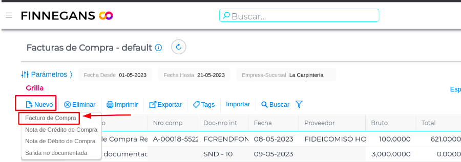- Nuevo - Factura Compra
