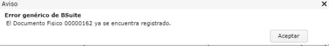 Días después, el mismo cheque vuelve a ingresar por otro proveedor y en otra cobranza. El sistema arroja el siguiente error: