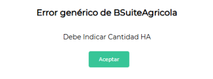 Descripción del Problema: Al intentar realizar la reasignación de actividades, aparece el siguiente mensaje de error: “Error genérico de BSuiteAgricola | Debe indicar cantidad HA.”