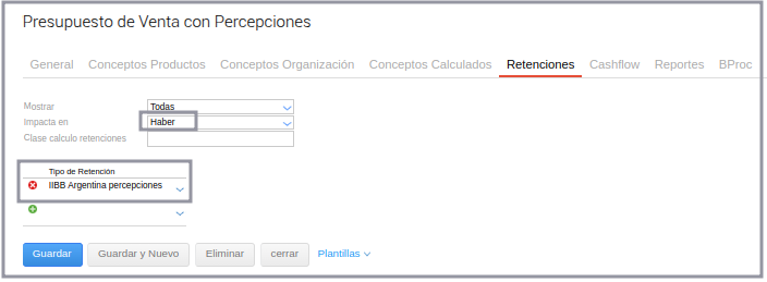 - Tipo de retención: indicar las percepciones que se pueden calcular automáticamente.