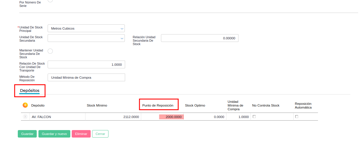 Verificar en la opción “Depósitos” si tiene configurado un punto de reposición: