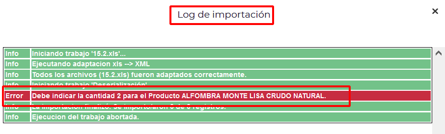 - Agregar el dato “Cantidad2” al excel que se está tratando de importar en la transacción “Recuento de Mercadería”.
