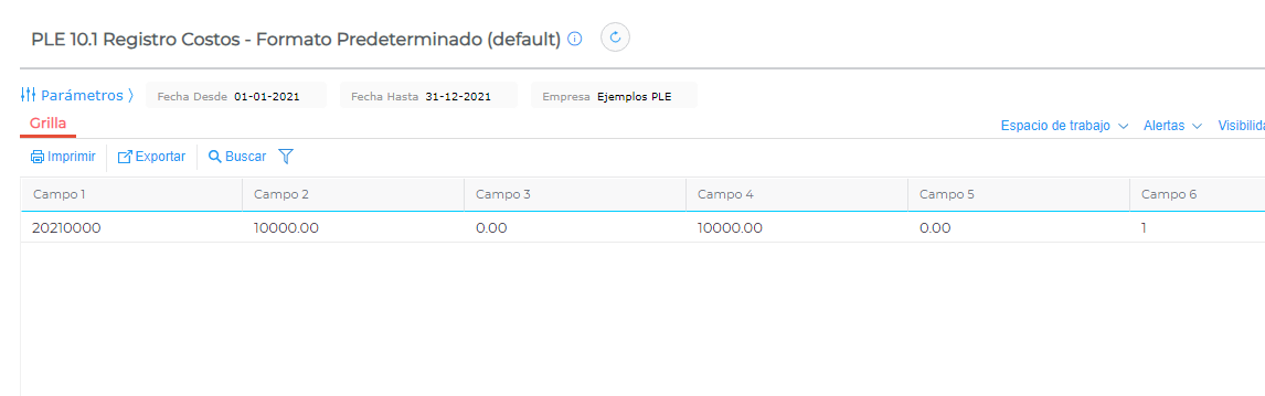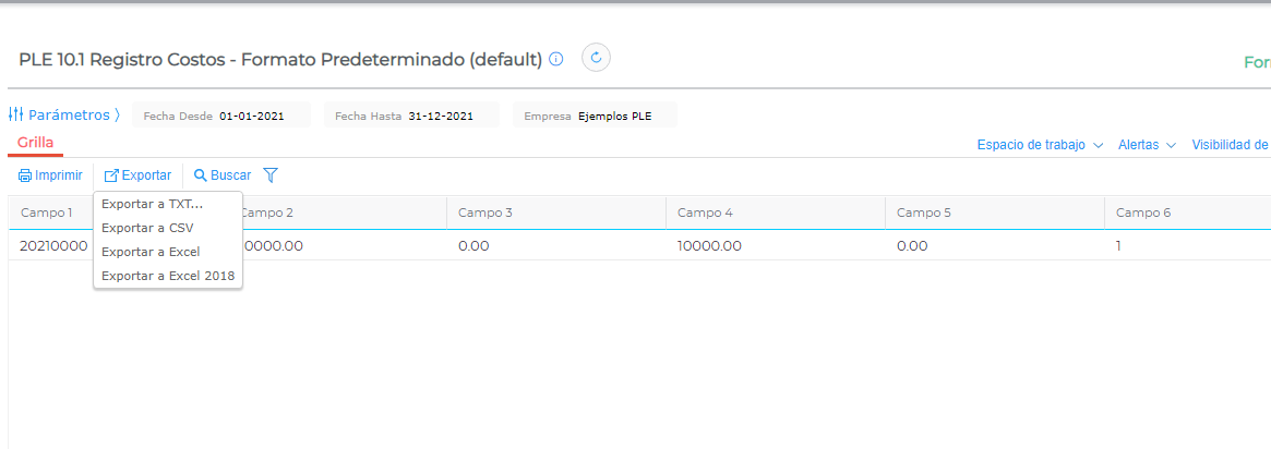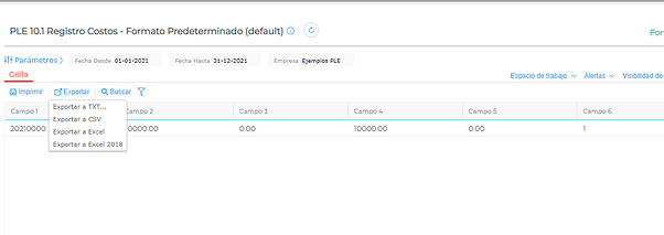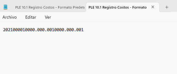 Menú → Gestión Empresarial → Impuestos → Registros PLE → PLE 10.1 Registro de Costos