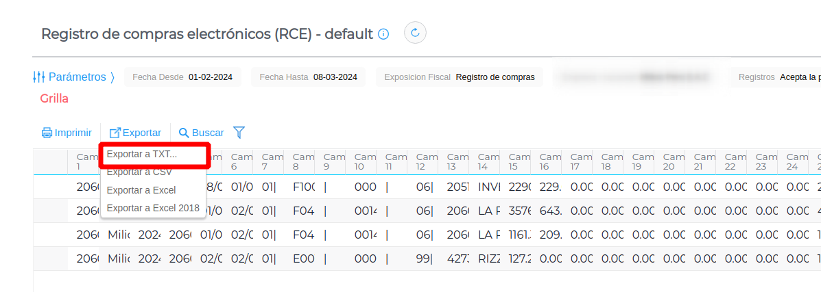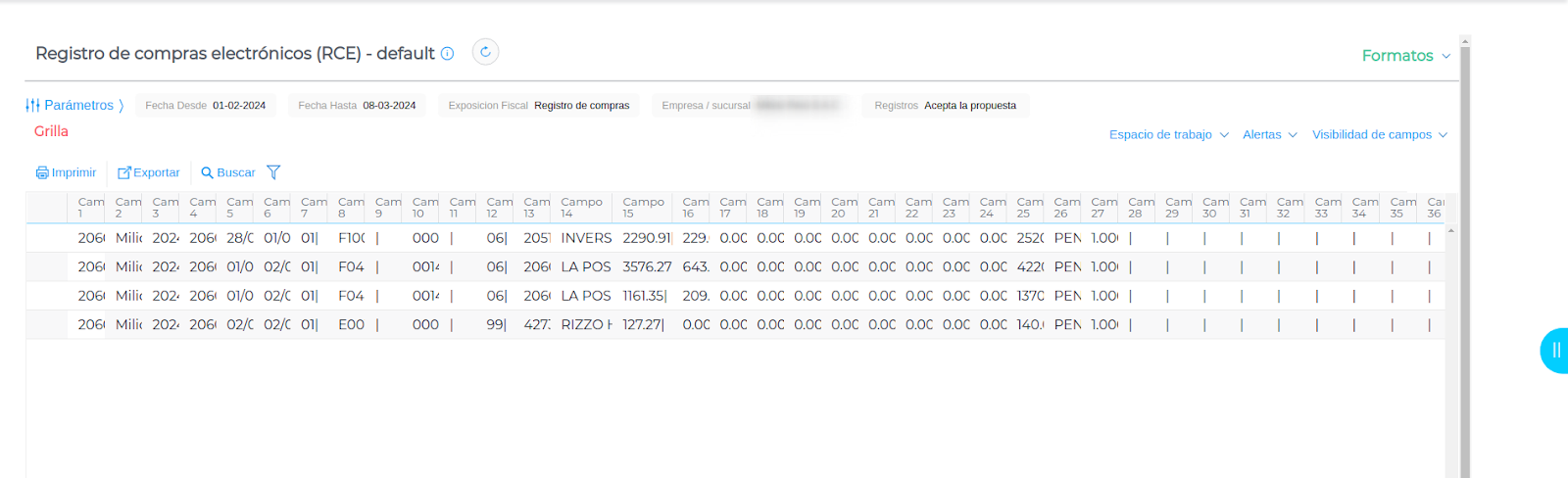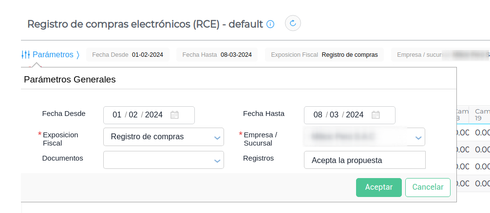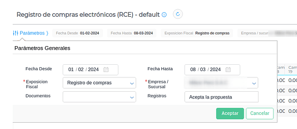 - Documentos: Es un selector que traerá todos los documentos que se encuentren configurados en la exposición fiscal. Esto permite poder seleccionar uno o varios documentos y el registro solo mostrará eso. (Es principalmente para la opción de ajustes posteriores)